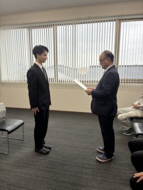 本日、新入社員が1名(新卒)入社し、社内で入社式を執り行いました。