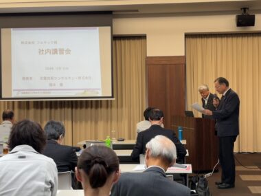 講師として株式会社ニュージェックの杉本利英様(国内営業本部部長 技術部長)、北電技術コンサルタント株式会社の橋本徹様(執行役員DX・事業推進室長)をお招きし、杉本様には「異常気象による降雨・降雪状況を知り防災に活かす」他として、近年の異常気象の原因やこれからの気象状況について説明していただきました。また、橋本様には「別又発電所新設工事のフィールドを利用した新技術の活用と技術継承」他として、自社で立ち上げた新設工事についてや技術継承としての取組についてお話いただきました。