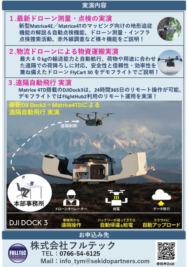 本セミナーは、従来の測量・点検に加えて、運搬・遠隔自動飛行のドローンを紹介させていただきます。